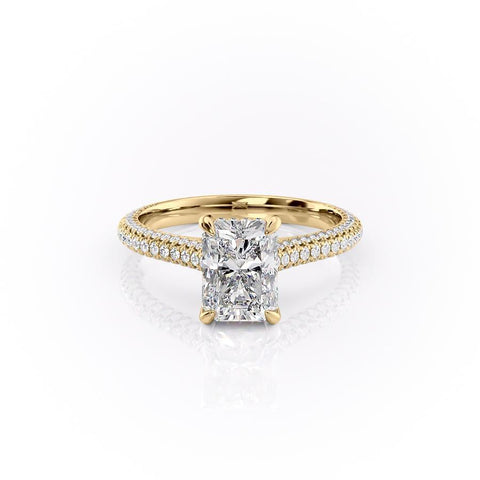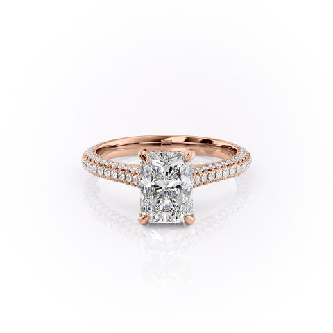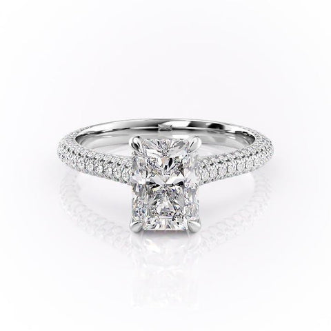 Radiant Cut Lab Diamond Engagement Ring, Pave Set Shoulders